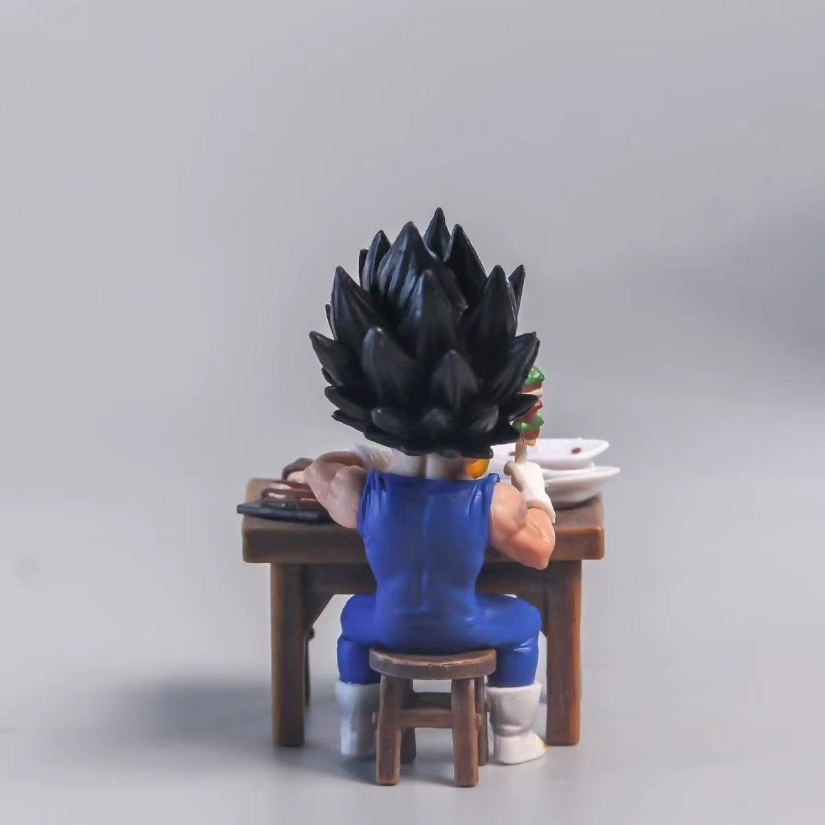 Goku & Vegeta en pleine pause repas – scène hilarante où nos Saiyans se goinfrent (8 cm).